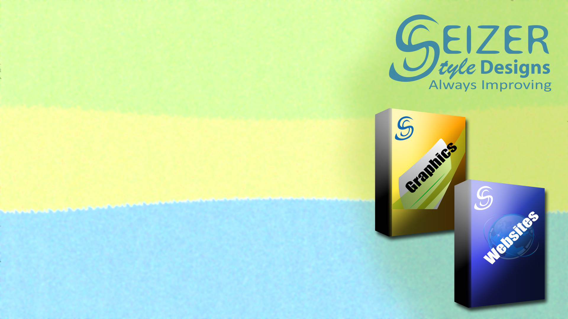 SeizerStyle Designs Blended Wallpaper is a pastel themed desktop wallpaper representing typical services provided by the company as boxed product sets. This wallpaper was designed with a concentration of graphics to the right of the screen so that desktop icons on the left would be balanced out.