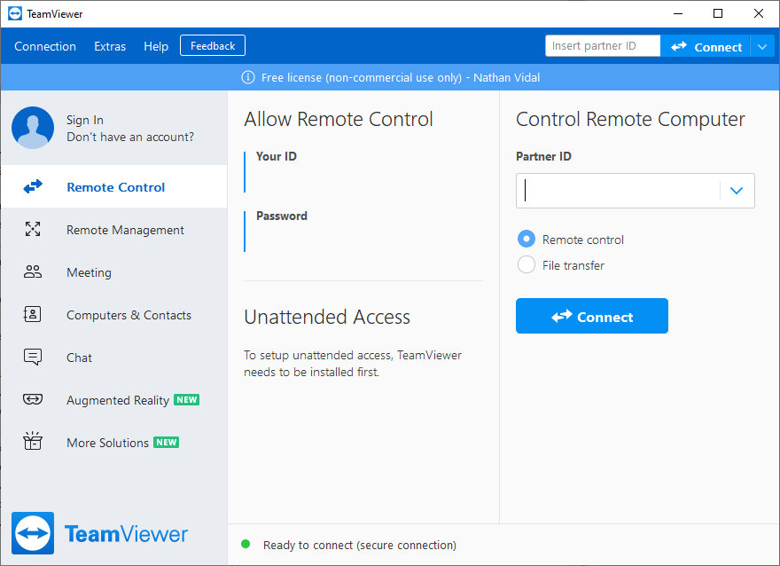 TeamViewer Remote Control Screen (ID and Password Omitted)